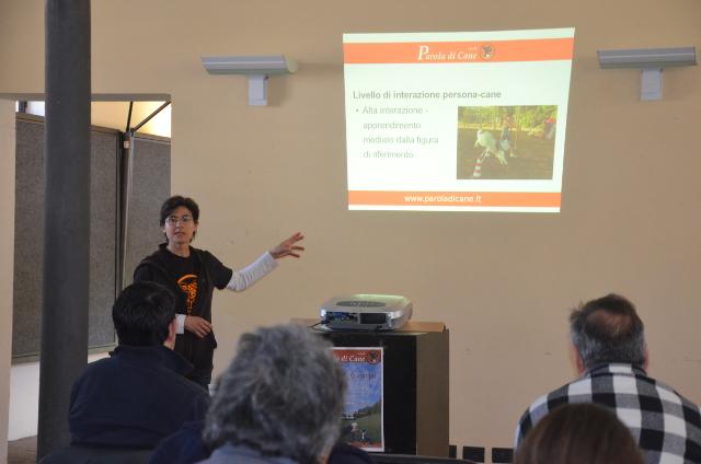 Il suo intervento ha catturato l'attenzione del pubblico per più di un'ora con un'appassionante panoramica su alcune delle attività che si possono fare insieme al cane, sulle capacità motorie e i gruppi muscolari interessati, sulle modalità di allenamento e i processi metabolici, su come sono strutturati il per-corso e la singola lezione.