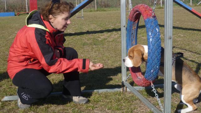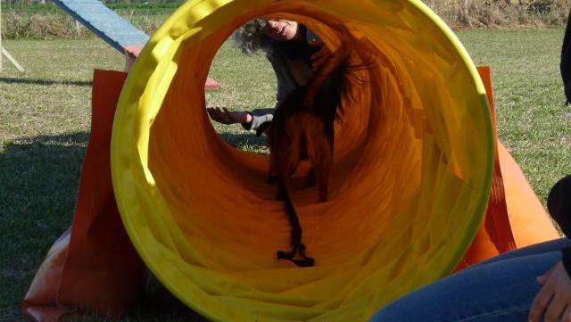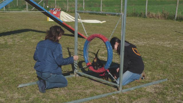 Nella stazione 5 – campo di agility i cani hanno sperimentato l'altezza della passarella, il buio del tunnel morbido e la ristrettezza del passaggio nel tunnel rigido, l'ebrezza del salto nella ruota, la difficoltà della palizzata, l'instabilità della bascula e i conduttori hanno dovuto trovare ogni volta il modo adatto per indicare al loro cane come utilizzare l'attrezzo.