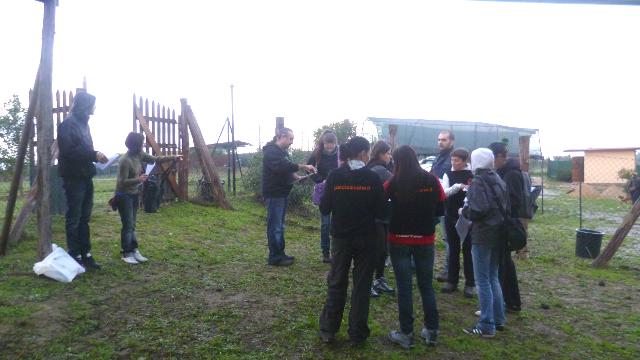 Sfidando il maltempo preanninciato il nutrito staff si è riunito la mattina presto per un veloce briefing e per l'allestimento delle aree di lavoro: