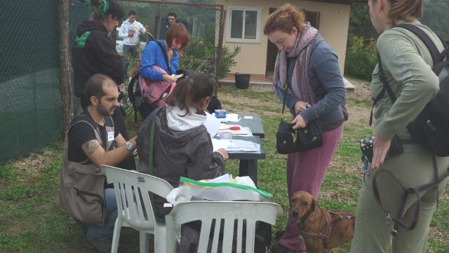 Già elle 8,30 arrivavano i primi binomi per le operazioni di segreteria e per una passeggiata rilassante nella campagna circostante che in breve è stata invasa da decine di cani con eleganti pettorine. Subito dopo il breve saluto iniziale, i “concorrenti” sono stati divisi in tre gruppi e guidati ognuno all'interno di un'area di lavoro: