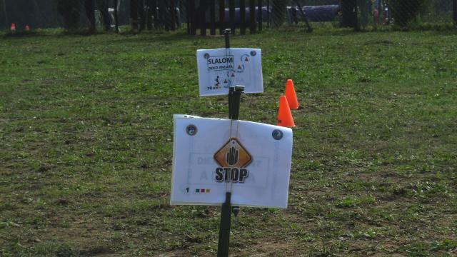 Area Rally Obedience – La rally obedience è una nuova disciplina sportiva in cui cane e conduttore si muovono in sincronia e realizzano insieme quanto trovano scritto sui cartelli che incontrano lungo il tragitto. Nell'area rally abbiamo realizzato un primo avvicinamento a questa disciplina predisponendo anche qui due percorsi paralleli con stazioni abbastanza semplici, come ad esempio lo stop, lo slalom e il giro di 270°. Sebbene gli educatori presenti dessero anche indicazioni molto tecniche su come affrontare i cartelli e le relative stazioni, ai binomi è stata lasciata libertà di “personalizzare” il percorso secondo le esigenze e le competenze del proprio cane. -