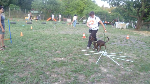 Durante la serata si sono alternati esercizi propedeutici alla gestione del guinzaglio e giochi di verifica, per concludere con due percorsi riepilogativi di quanto fatto in entrambi i laboratori svolti fin qui.