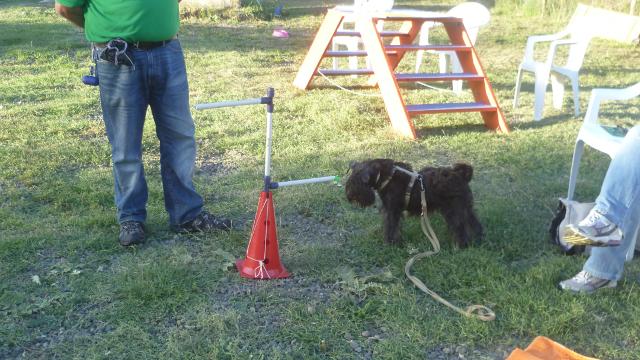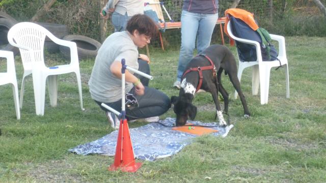 Per Margot l'ambiente non era proprio l'ideale con persone molto vicino, tanti cani e tanti click, inoltre non era molto allenata a lavorare con il clicker. Per lei il compito di toccare il campanellino era troppo gravoso, meglio ripartire da compiti più semplici, tipo il “guardami” o il targeting sulla mano.