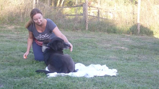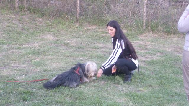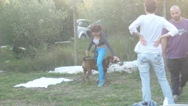 Rita era così pronta a collaborare e così orientata a Daniela da sistemarsi sempre di fronte a lei e da metterla in difficoltà nell'ottenere una posizione e una postura che aiutassero il cane ad eseguire il gesto. Alla fine, comunque il movimento è stato impostato e nei prossimi giorni sicuramente potrà essere migliorato.