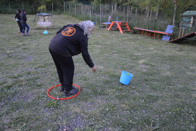 Dopo aver affrontato singolarmente le quattro stazioni ogni binomio si è cimentato in un percorso costituito da tutte prove una di seguito all'altra e, per chiudere l'allenamento, una sana competizione: una sfida all'ultimo stick a masticare! Due squadre si sono sfidate su un percorso a staffetta costituito da 3 prove: una di calma e concentrazione, una di velocità e collaborazione, una di coordinazione e precisione. Ha vinto la sfida la squadra che ha completato per prima il percorso e i cani hanno guadagnato tutti gli sticks risparmiati evitando le penalità.