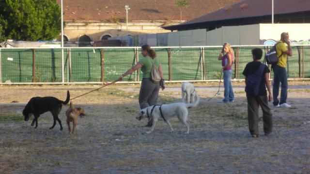 Dopo una breve passeggiata per permettere ai cani di rilassarsi un po’ abbiamo affrontato la prova n° 4 “aspetta” – i cani, a turno, sono stati legati in luoghi sicuri e riparati ma a vista delle persone e dei cani che passavano. Per questa prova devono attendere 3 minuti e devono dimostrare di non subire eccessivamente il distacco dal proprietario che rimarrà fuori dalla loro vista.